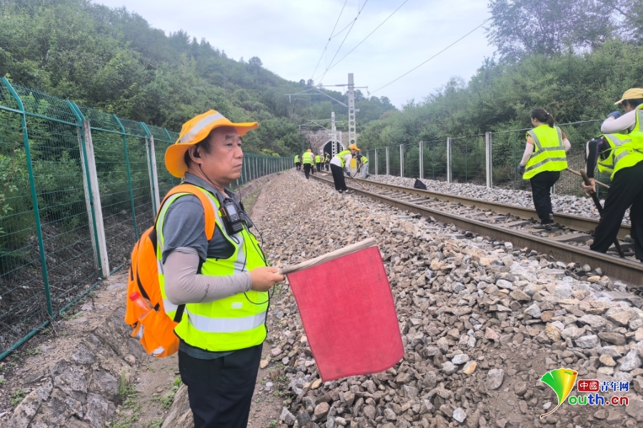 “防护备品查看结束,通讯试机正常!”4点40分,他对着对讲机喊话,声响在空阔铁道旁分外清亮。5点整,大机捣固车轰鸣而至,钢轨与道砟的磕碰声划破拂晓。朱志军马上站直身体,左手握黄红信号旗,右手按紧对讲机,目光如雷达般环视作业区,时间预备宣布指令。